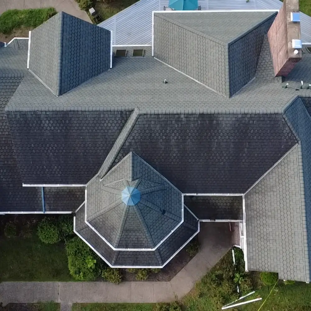 When you contact us, we start by looking at your roof type, the amount of buildup present, and the surrounding areas that need to be protected. Then we apply a roof-safe cleaning treatment and use a low-pressure washing process designed to remove algae, moss, and grime while treating the roofing surface with care. We also take steps to protect nearby landscaping and leave the area looking neat when the job is done.